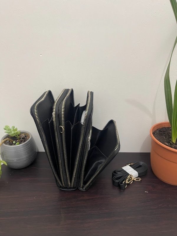 MINI BANDOLERA ORGANIZADORA. PORTA CELULAR Y BILLTERA. TIRA DESMONTABLE. 3 COMPARTIMIENTOS